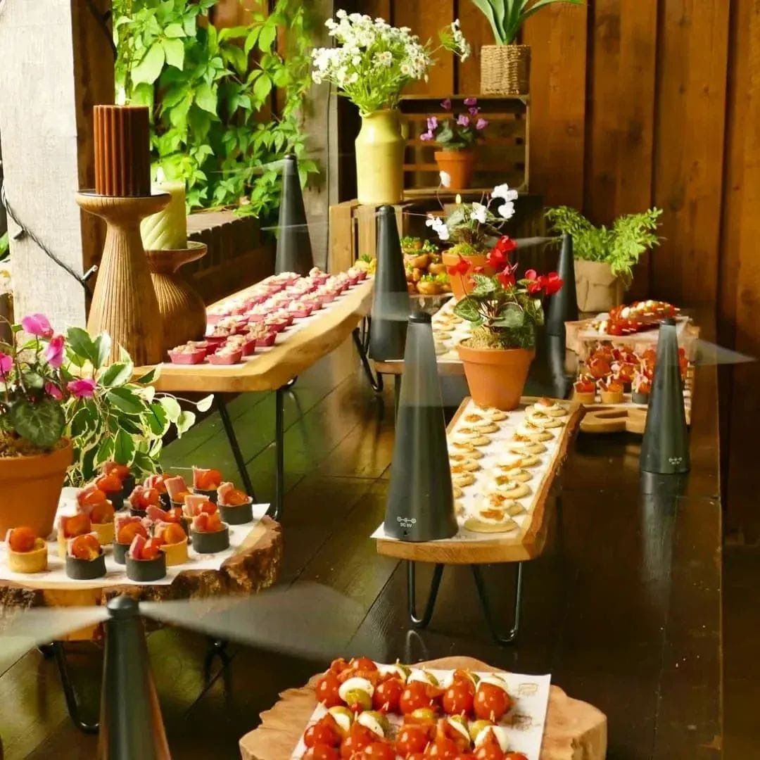 Your grazing table will include full tablescape adding an element of theatre, along with palm leaf boats and disposable cocktail napkins.